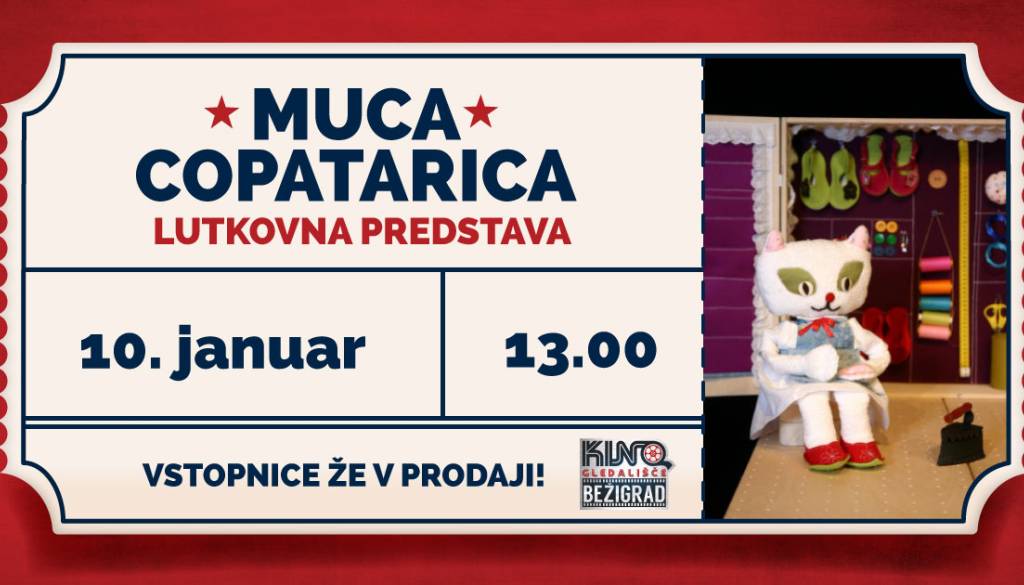 Lutkovna predstava Muca Copatarica pri nas v soboto, 10. januarja ob 11.00 (razprodano) in 13.00! 🐱