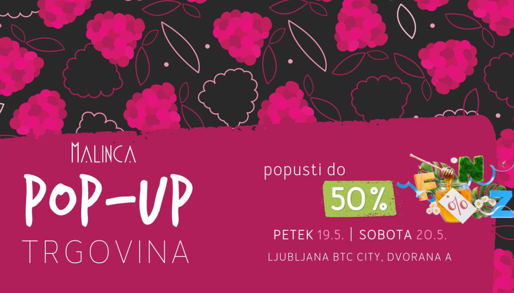 Družili se bomo v petek, 19.5. in soboto, 20.5. (9:00 - 20:00) v Dvorani A v BTC Cityju na 2. Malincini POP-UP trgovini.