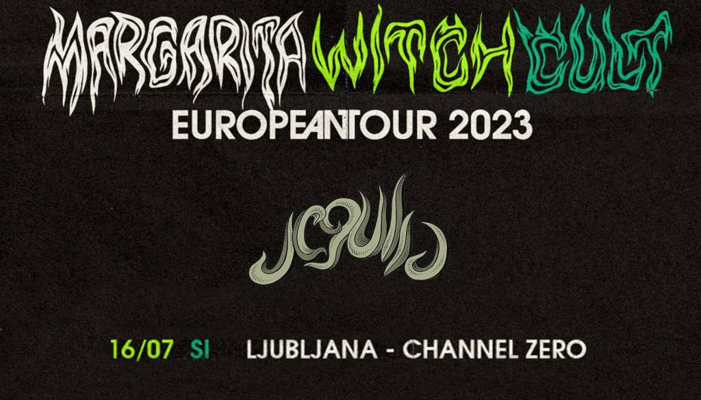 Margarita Witch Cult je britanski bend iz Birminghama. S svojo neusmiljeno mešanico sludgea, dementnega thrasha in proto-metalskih čudaštev so postali nasledniki v dolgi vrsti doomerskih bendov, ki so ustvarjali glasbo, kot so jo Black Sabbath. Njihov demo posnetek "Witchfinder", izdan v začetku leta 2022, je požel mednarodno priznanje in privabil pozornost Desertfest London-a, enega izmed največjih stoner / doom festivalov v Veliki Britaniji. Margarita Witch Cult se osredotočajo na močne in vpadljive kitarske riff-e, ki so ključni element v njihovi glasbi. S svojimi intenzivnimi nastopi so raztrgali dvorane po vsej Veliki Britaniji in puščali občinstvo osuplo. Njihov glasbeni slog je temen, močan in agresiven, a hkrati tudi eksperimentalen in inovativen. Za uvod se jim na odru pridružijo še progresivni stoner metal trio, JEGULJA!