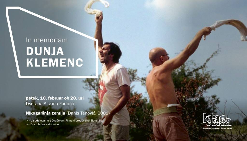𝗜𝗻 𝗺𝗲𝗺𝗼𝗿𝗶𝗮𝗺: 𝗗𝘂𝗻𝗷𝗮 𝗞𝗹𝗲𝗺𝗲𝗻𝗰 V petek, 𝟭𝟬. 𝗳𝗲𝗯𝗿𝘂𝗮𝗿𝗷𝗮, bo na sporedu Nikogaršnja zemlja (Danis Tanović), ki je leta 2001 prejel oskarja in zlatega globusa za ...