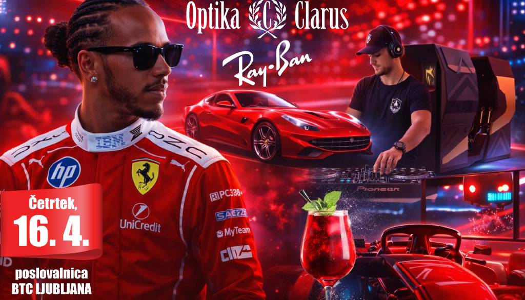 Moda. Stil. Ferrariji. Simulator dirkanja: Optika Clarus BTC Ljubljana odpira NAJVEČJI oddelek Ray-Ban očal v Sloveniji!