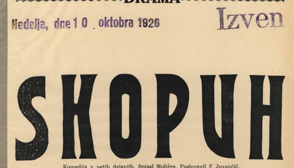 Vabljeni na zgodovinski prelet slovenskih gledaliških srečevanj z Molièrovim Skopuhom, ki ga pripravlja teatrologinja in kustosinja Ana Perne. Diana Koloini, dramaturginja aktualne uprizoritve v SNG Drama Ljubljana pa bo predstavila svoj pogled na to Molièrovo komedijo.