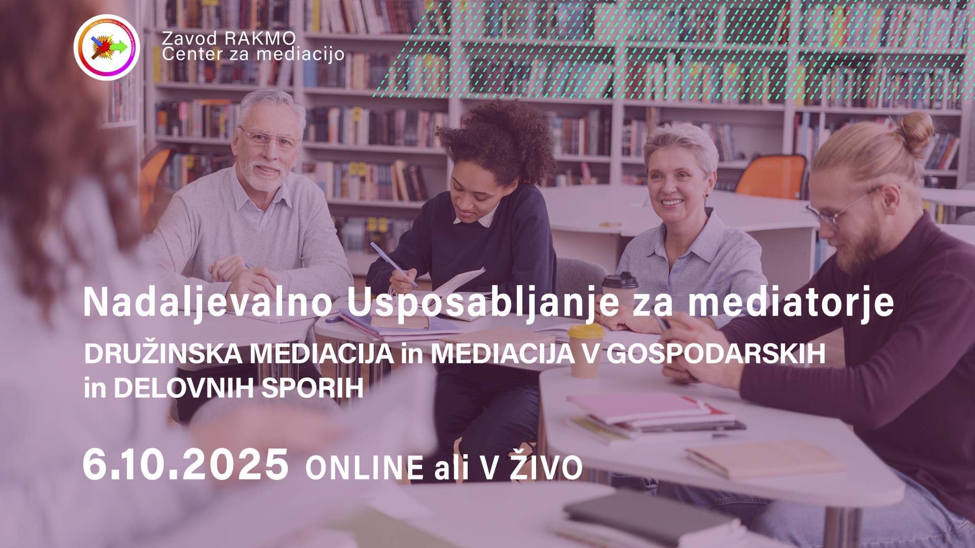 OP.: POGOJ ZA UDELEŽBO je predhodno pridobljen naziv mediator oz. opravljeno osnovno mediacijsko usposabljanje.