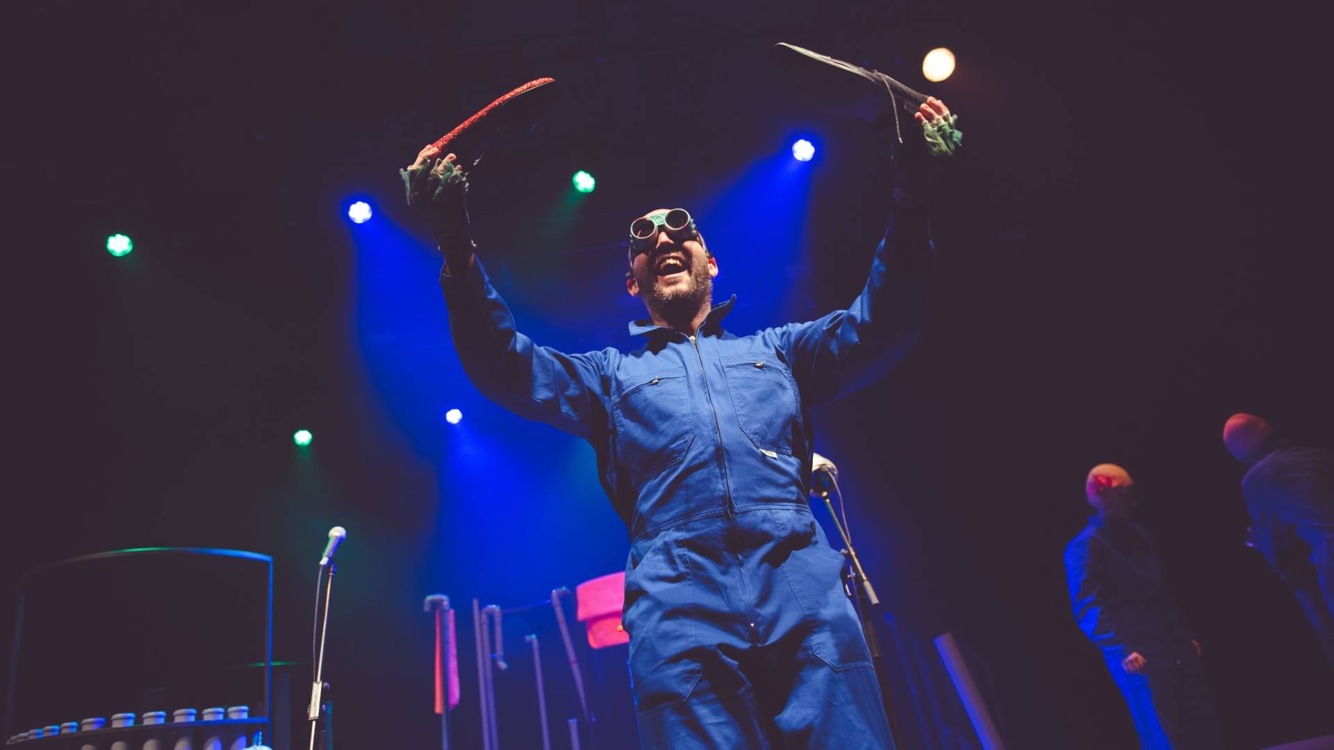 Underwater Concert immerses spectators in an underwater world where there are no huge machines, no factories and no supermarkets. Down under lives Waterman Ambrož in his idyllic and perfect life. But this sense of carefree life soon gets invaded by the clutter from dry land and the Water People become an endangered species. In order to protect his kinship Ambrož makes a visit to terrestrial land in a quest to find himself a wife. He finds out that above the surface the sounds, odors and habits are quite different, not only weird but sometimes even dangerous!