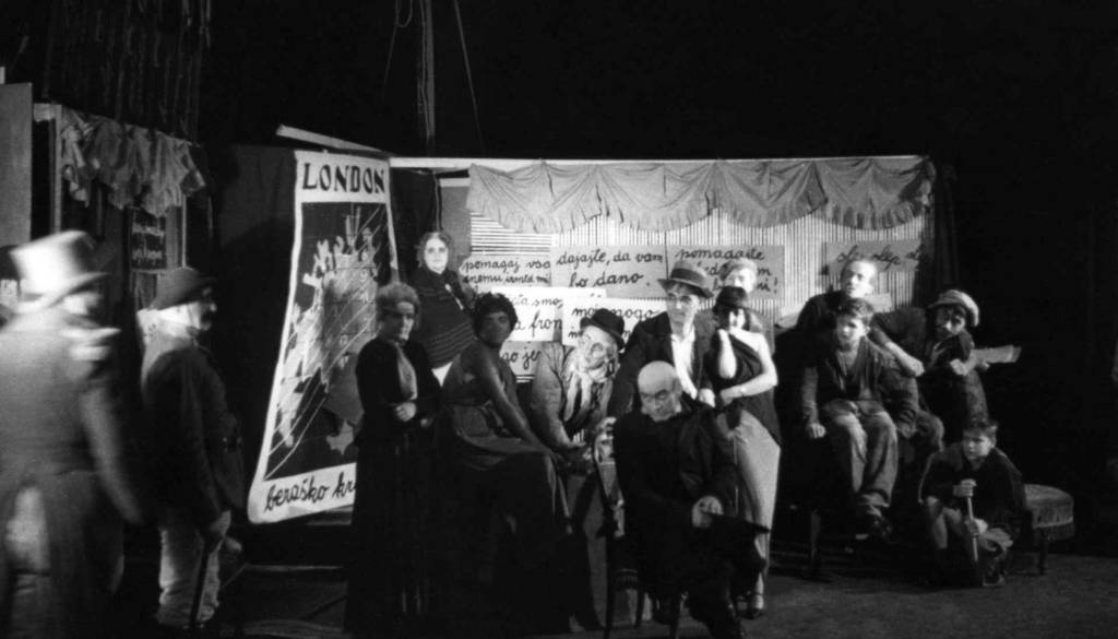Fotografija: Bertolt Brecht, Kurt Weill, Beraška opera, režiser Bojan Stupica, prevajalca Fran Albreht in Niko Štritof, dirigent Bojan Adamič, Narodno gledališče v Ljubljani, premiera 30. septembra 1937. Vir: Ikonoteka SLOGI – Gledališki muzej.