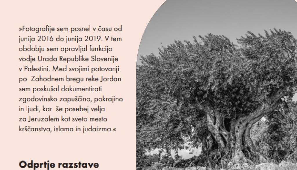 Galerija Družinavljudno vabljeni na odprtje fotografske razstave Utrinki iz Palestine avtorja Milka Dolinška, ki bo v torek, 12. septembra, ob 19. uri v Galeriji Družina (Krekov trg 1, 1000 Ljubljana). Po odprtju povabljeni tudi na manjšo pogostitev.