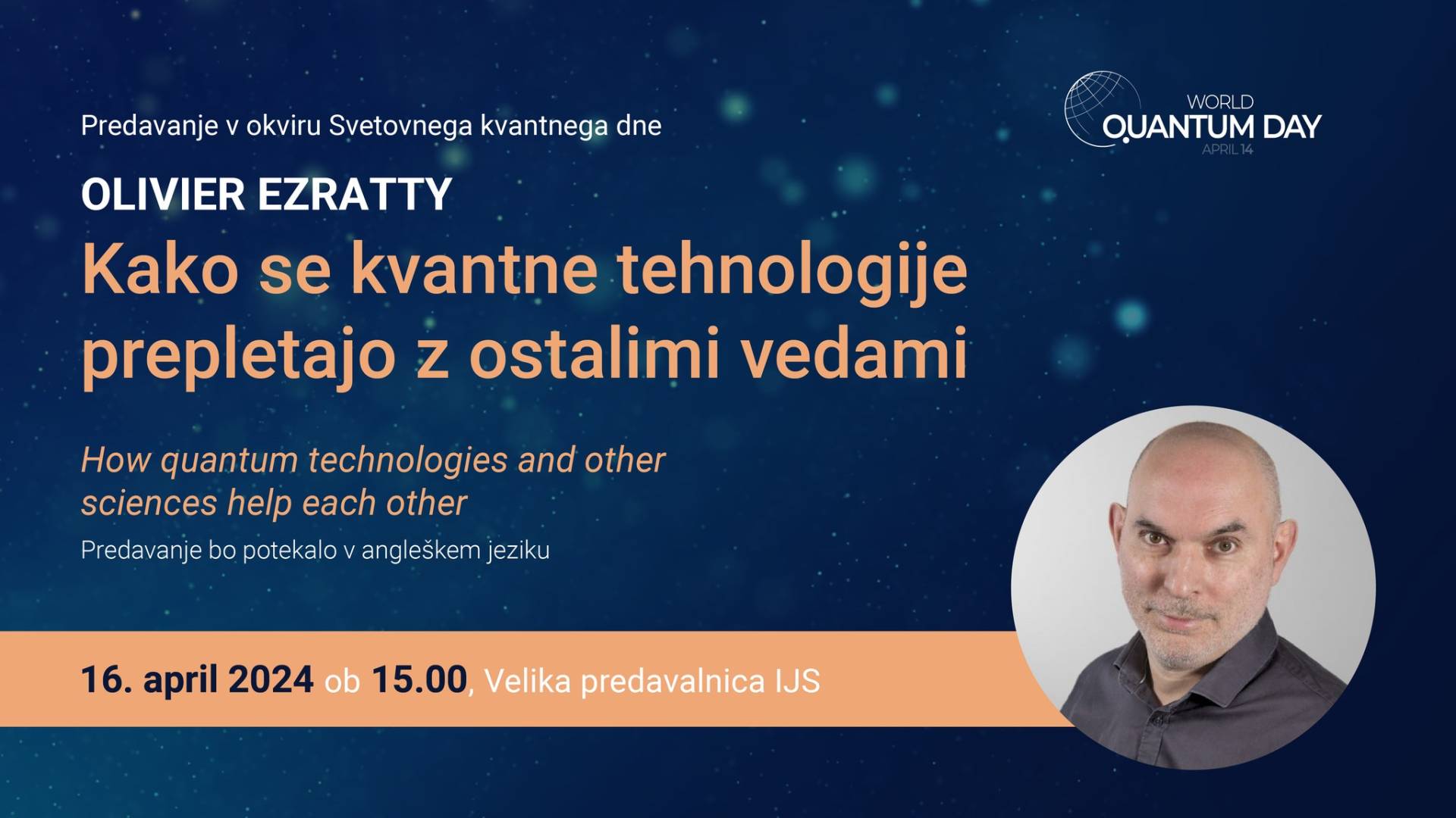 Institut "Jožef Stefan"Institut »Jožef Stefan« se že nekaj zadnjih let aktivno vključuje v prizadevanja, ki bi Slovenijo umestila med vodilne države v Evropi na področju kvantnih tehnologij. Ob 14. aprilu, Svetovnem kvantnem dnevu, skupaj s slovensko skupnostjo za kvantne tehnologije QUTES pripravlja niz dogodkov in vabi na predavanje enega največjih strokovnjakov in komunikatorjev znanosti na področju kvantnih tehnologij Olivierja Ezrattyja.