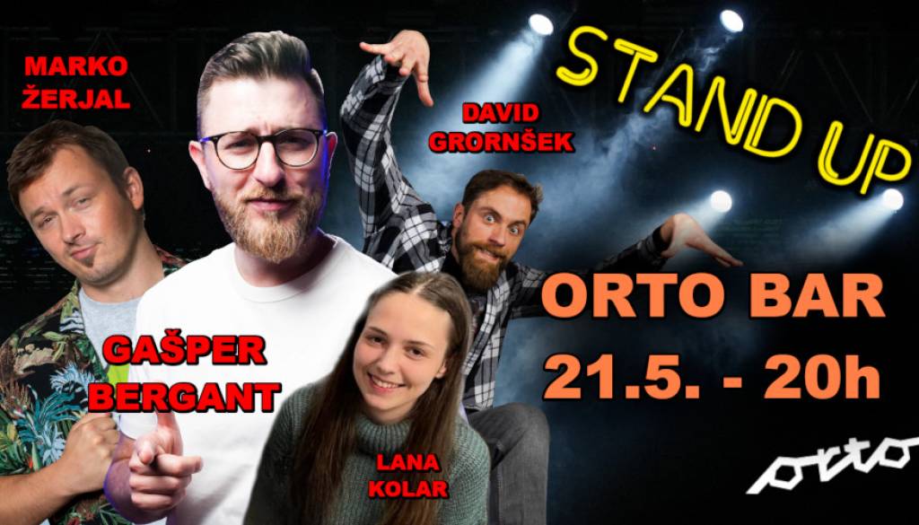 V četrtek, 21.5., nas pridejo v Orto bar nasmejat kar štirje slovenski komiki, Gašper Bergant, Marko Žerjal, David Gorinšek in Lana Kolar!