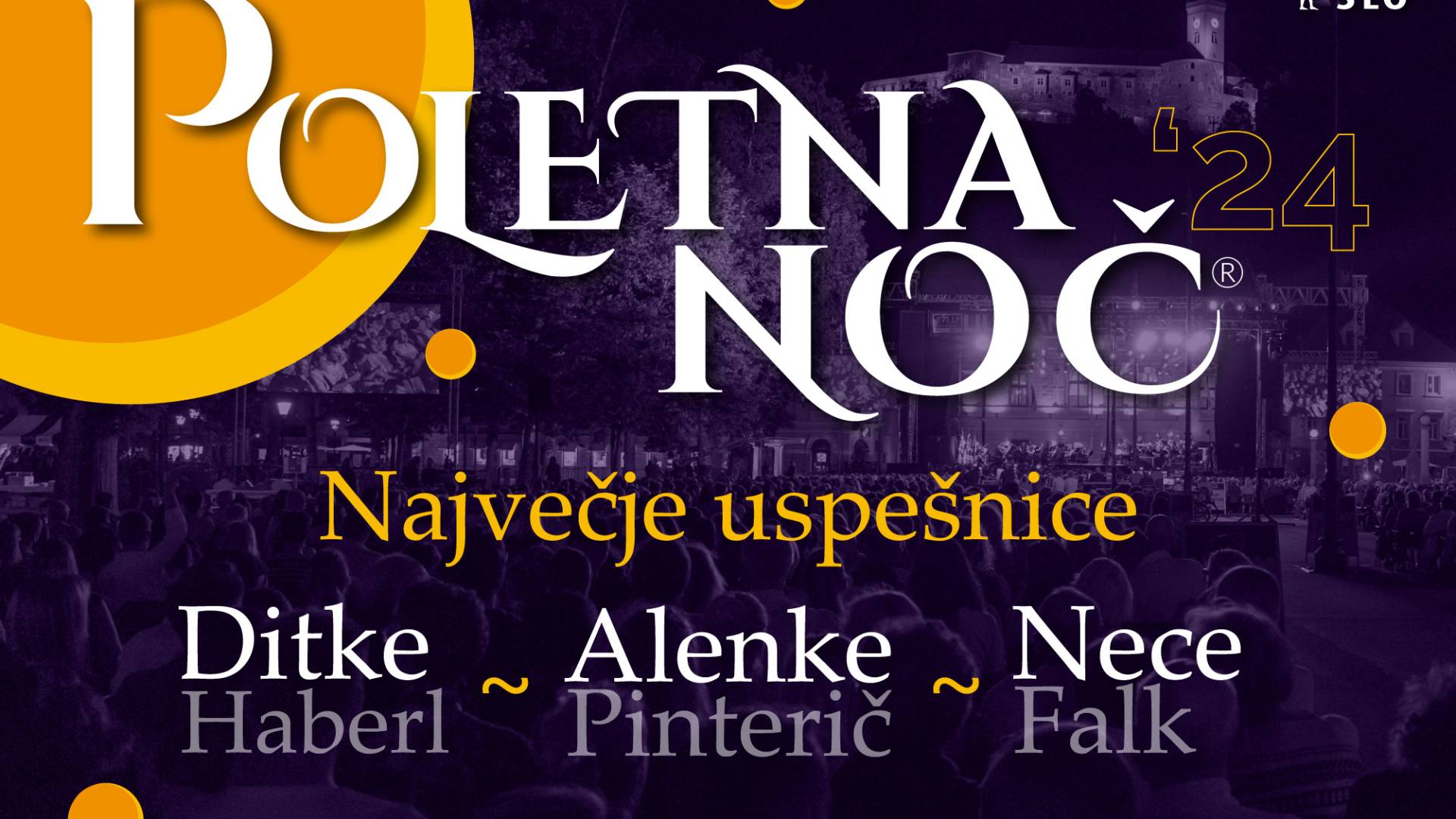 Kongresni trg LjubljanaTradicionalni gala koncert - Poletna noč, ki predstavlja bogato dediščino slovenske zabavnoglasbene zakladnice v izvedbi velikega revijskega orkestra, bo tokrat posvečen popevkam Ditke Haberl, Alenke Pinterič in Marjetke Nece Falk, glasbenim uspehom treh izjemnih pevk generacije, ki je zaznamovala zgodovino festivala Slovenska popevka in ki jo med drugim povezuje rojstno mesto – Maribor.
