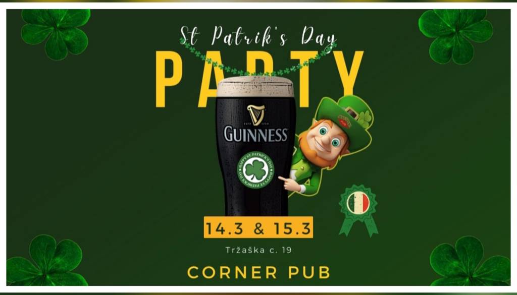 Tržaška cesta 19, Ljubljana🍀🇮🇪V četrtek (14.3) in petek (15.3) se Sveti Patrick oglasi v Corner Pubu na Tržaški c. 19. Vabi vas vse in vam predlaga hladno Guinnessovo pivo iz njegove kleti, seveda pa ne bo gledal postrani, če namesto tega spijete kvaliteten Irski viski...🍻🍀