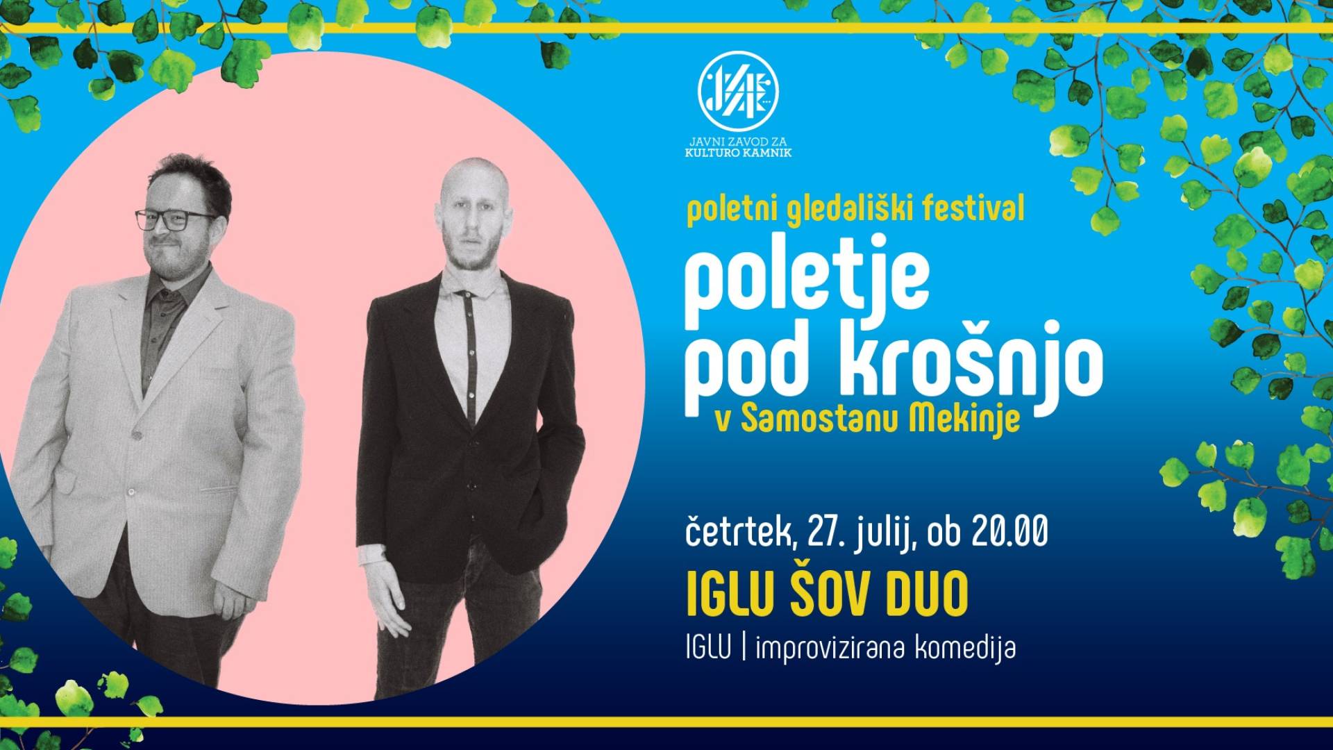 𝐈𝐆𝐋𝐔 – 𝐈𝐦𝐩𝐫𝐨𝐯𝐢𝐳𝐚𝐜𝐢𝐣𝐬𝐤𝐨 𝐠𝐥𝐞𝐝𝐚𝐥𝐢𝐬̌𝐜̌𝐞 𝐋𝐣𝐮𝐛𝐥𝐣𝐚𝐧𝐚 so Juš Milčinski, Peter Frankl in Vid Sodnik, ki so združili moči v odštekano performersko zasedbo z željo po profesionalnem delu na področju gledališke improvizacije. Za svoje ustvarjanje so prejeli več nagrad - tako pomembne, kot čisto nepomembne! IGLUjevci redno nastopajo v Ljubljani v Menzi pri koritu na Metelkovi, s svojimi predstavami in v mednarodnih zasedbah pa so se predstavili tudi že na Nizozemskem, Hrvaškem, Češkem, Poljskem, v Franciji, Kolumbiji, Avstriji, Nemčiji, Italiji, Belgiji in Švici ter po več mestih v Kanadi in ZDA. Celo v Kamniku so že bili!