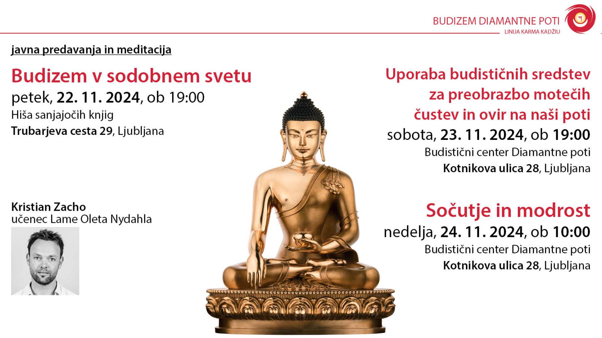 Budistični center Diamantne poti, Kotnikova ulica 28, LjubljanaPredavanje bo vodil Kristian Zacho, učenec Lame Oleta Nydahla.