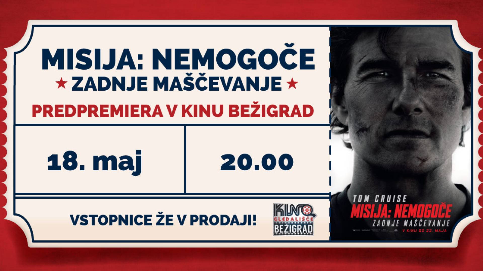 Kino BežigradMisija: Nemogoče - Zadnje maščevanje obljublja eksplozije, vratolomne akcije in napetost do zadnjega izdihljaja! 💥V že osmem delu legendarne franšize bo Tom Cruise znova premikal meje mogočega – ker vsaka sekunda šteje in je vsaka napaka lahko usodna. ⏱️ 18. maja vabljeni na predpremiero, da skupaj ugotovimo, ali je to res zadnja misija ... ali samo še ena pred zadnjo. 🤪🎬