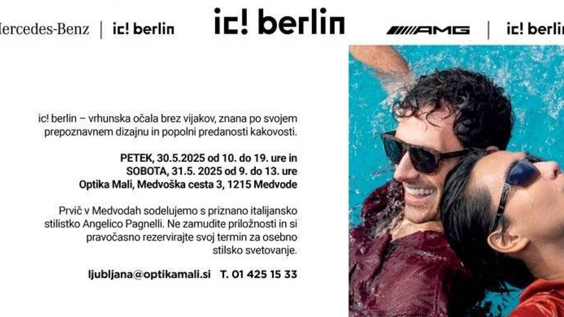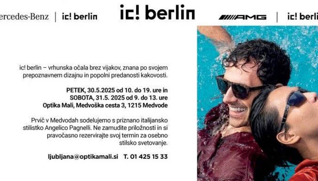Optika Mali, Medvoška cesta 3, MedvodeVabimo vas na ekskluzivno predstavitev vrhunske kolekcije očal ic! berlin, znane po svoji popolni tehnični dovršenosti, prepoznavnem oblikovanju in okvirjih brez vijakov.