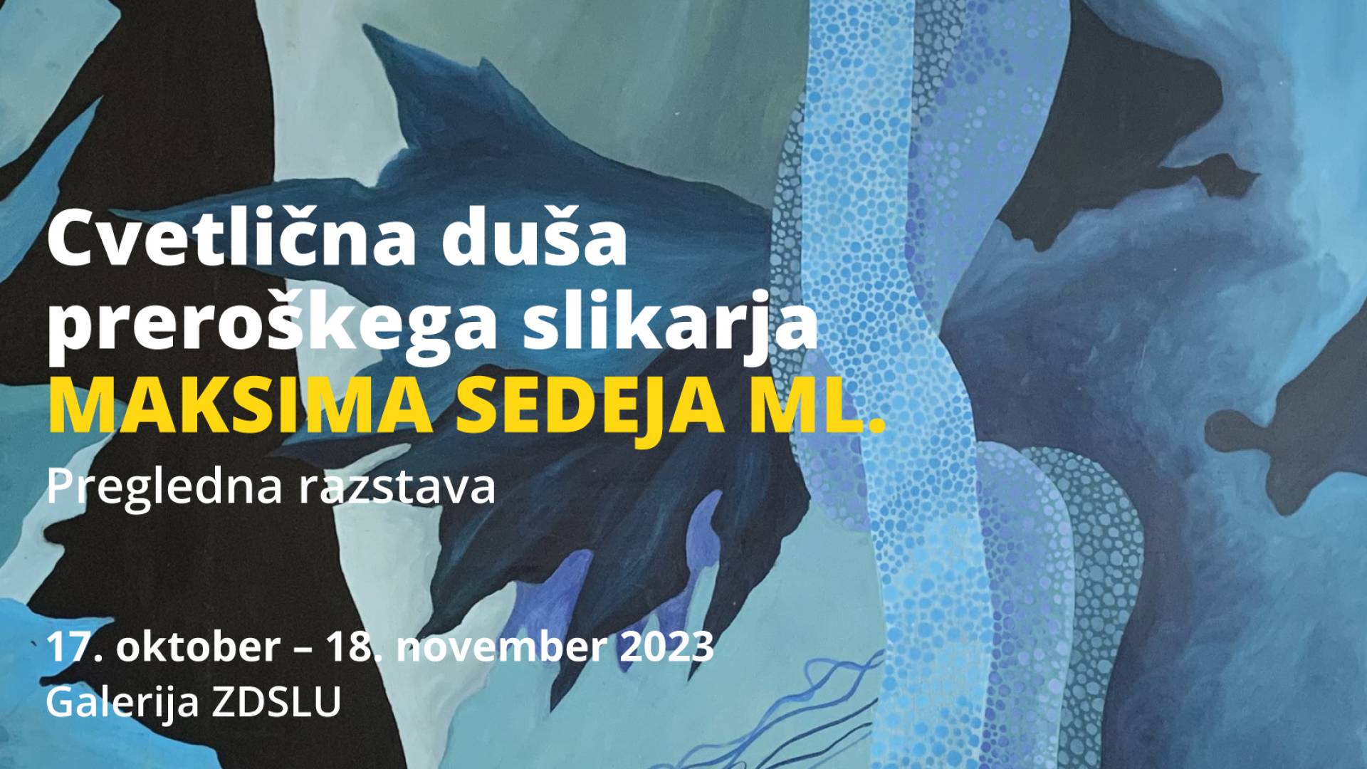 Galerija ZDSLUZveza društev slovenskih likovnih umetnikov vas vljudno vabi na odprtje pregledne razstave Maksima Sedeja ml. z naslovom Cvetlična duša preroškega slikarja Maksima Sedeja ml., v torek, 17. oktobra 2023 ob 18. uri v Galerijo ZDSLU, Komenskega 8, Ljubljana.