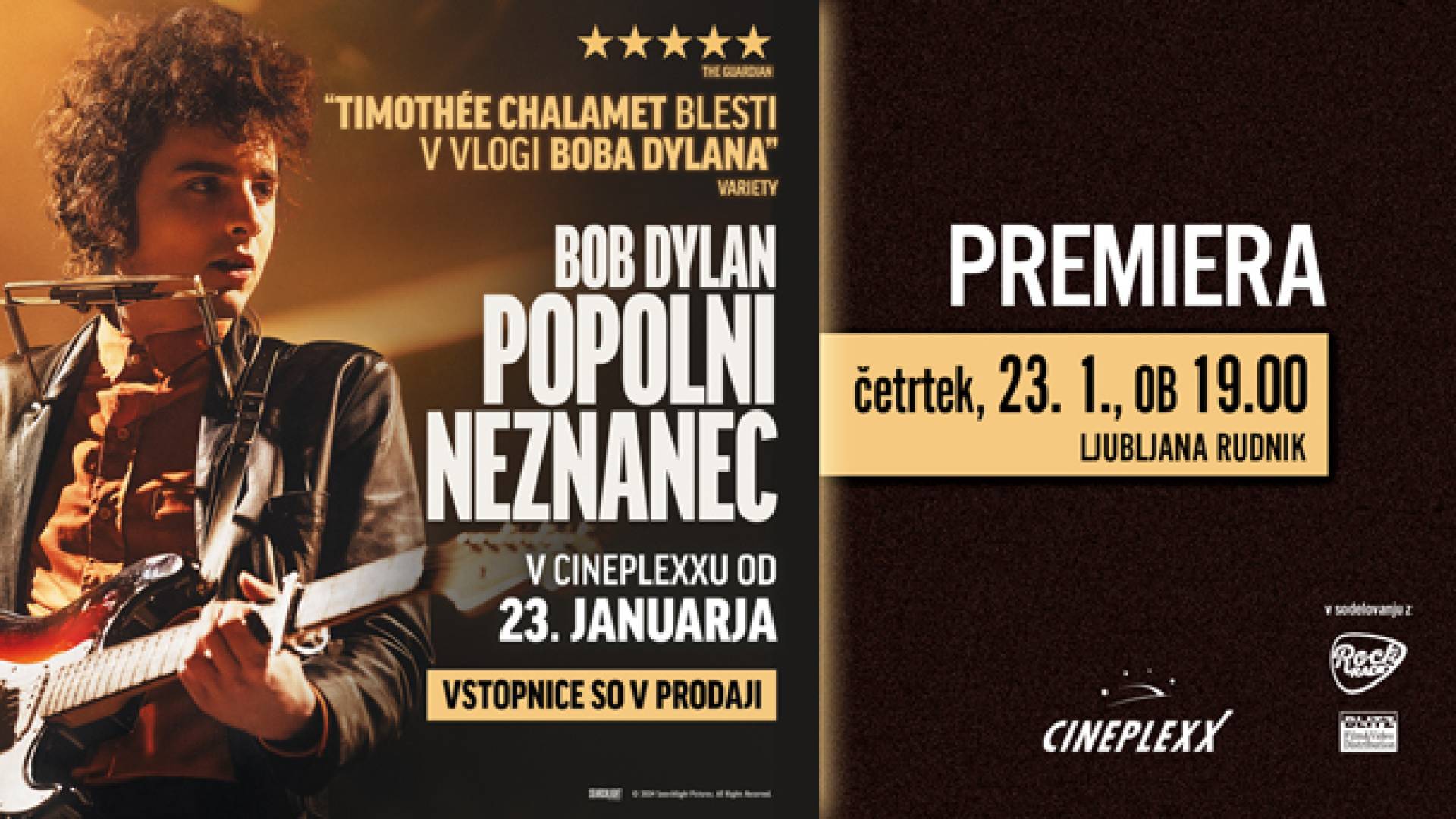 Cineplexx Ljubljana RudnikPridruži se na premieri filma BOB DYLAN: POPOLNI NEZNANEC, ki bo v Cineplexxu Ljubljana Rudnik, v četrtek 23. januarja 2025, ob 19:00!