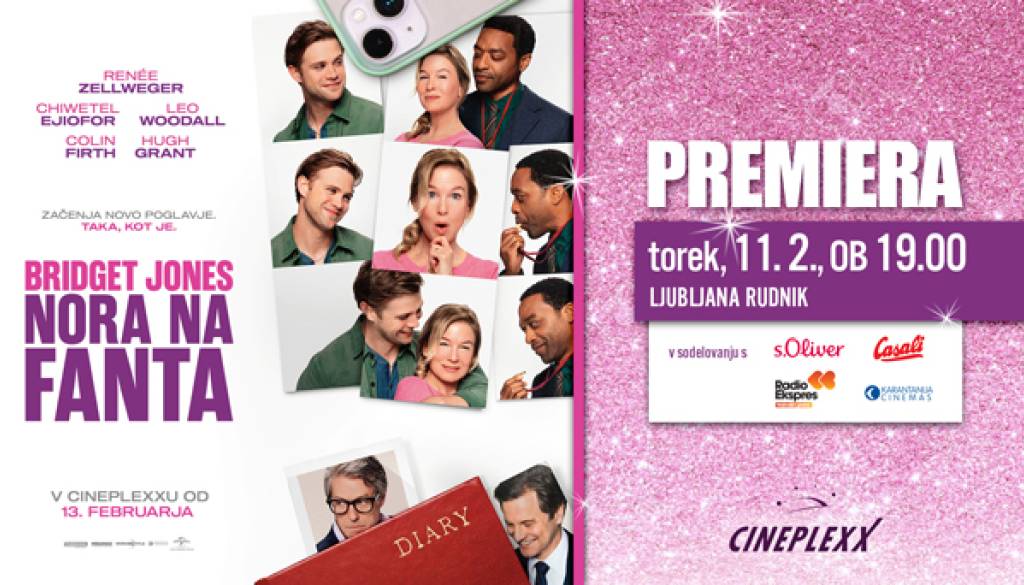 Cineplexx Ljubljana RudnikPridruži se nam na premieri filma BRIDGET JONES: NORA NA FANTA, ki bo v Cineplexxu Ljubljana Rudnik v torek, 11. februarja 2025, ob 19:00!