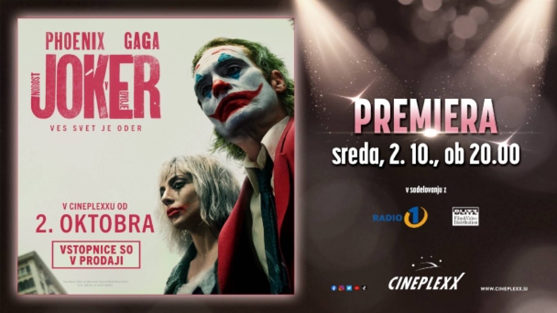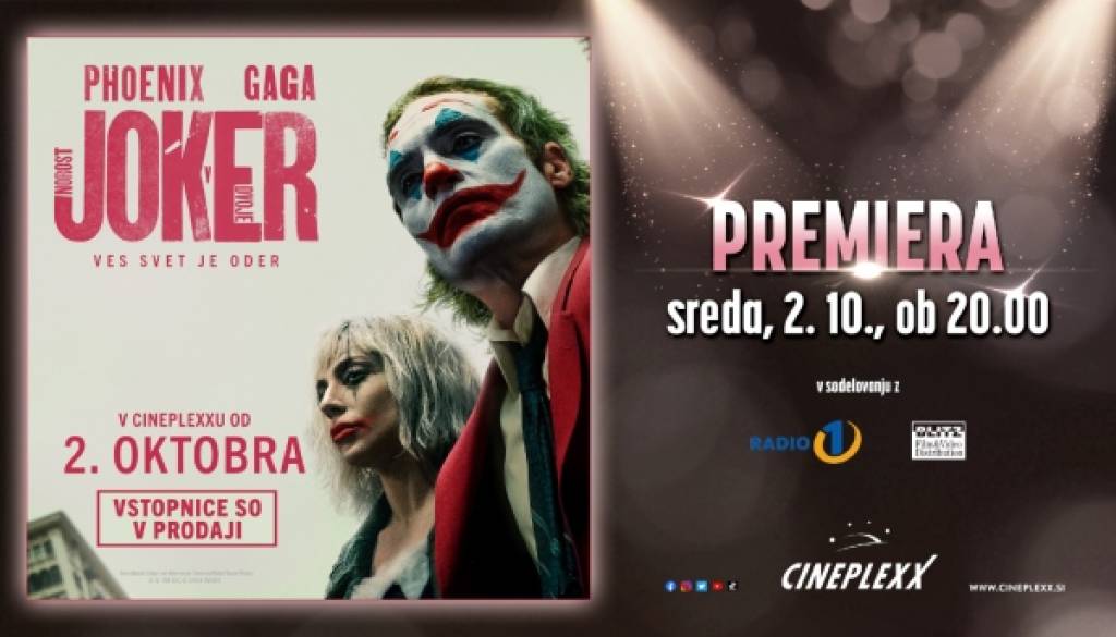Cineplexx Ljubljana RudnikPridruži se na premieri filma JOKER: NOROST V DVOJE, ki bo v Cineplexxu Ljubljana Rudnik, že v sredo, 2. oktobra 2024, ob 20:00!