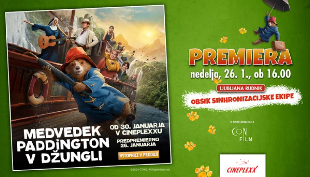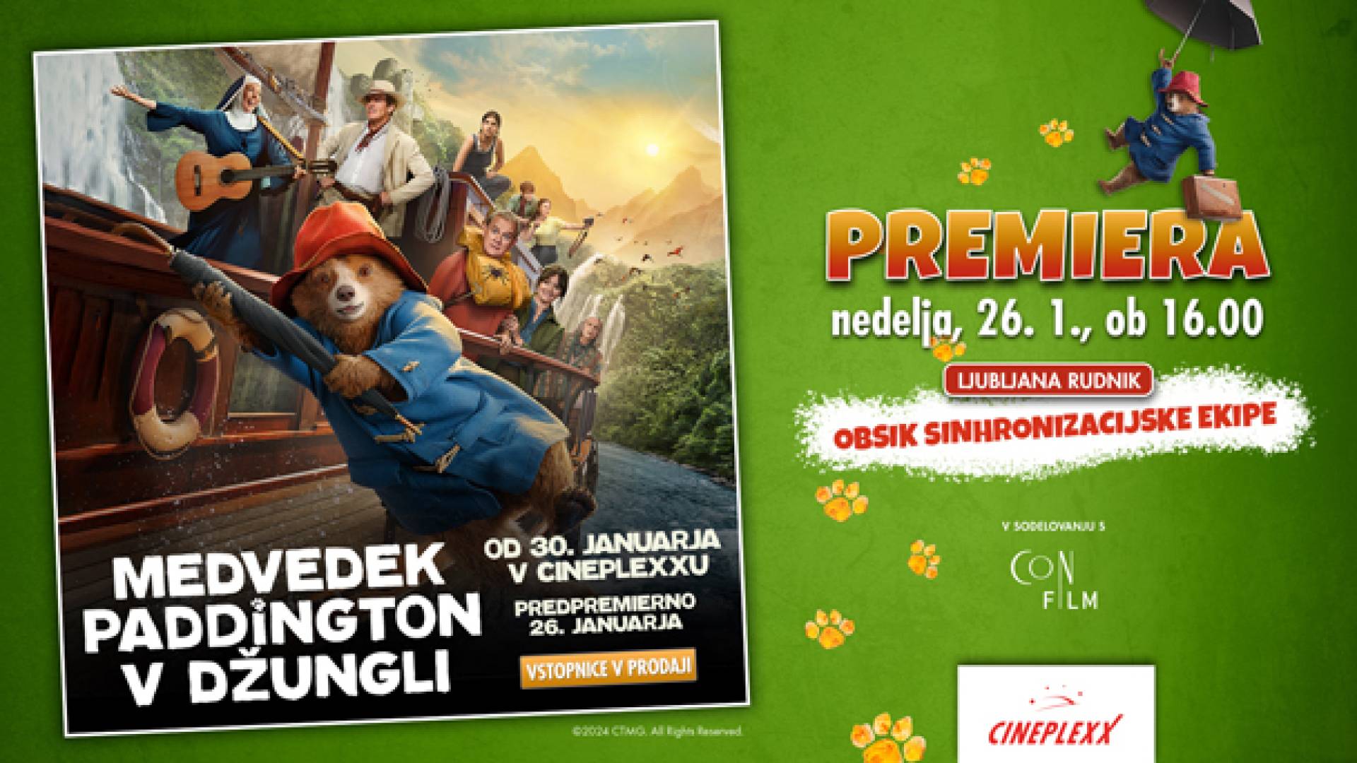 Cineplexx Ljubljana RudnikPridruži se na premieri filma MEDVEDEK PADDINGTON V DŽUNGLI, ki bo v Cineplexxu Ljubljana Rudnik, že v nedeljo, 26. januarja 2025, ob 16:00!