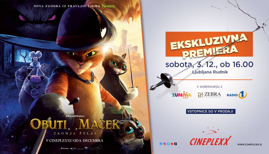 Premiera Obuti maček: Zadnja želja bo v soboto, 3. decembra, ob 16:00, v Cineplexxu Ljubljana Rudnik! Vstopnice 👉 https://bit.ly/3TEKZTg