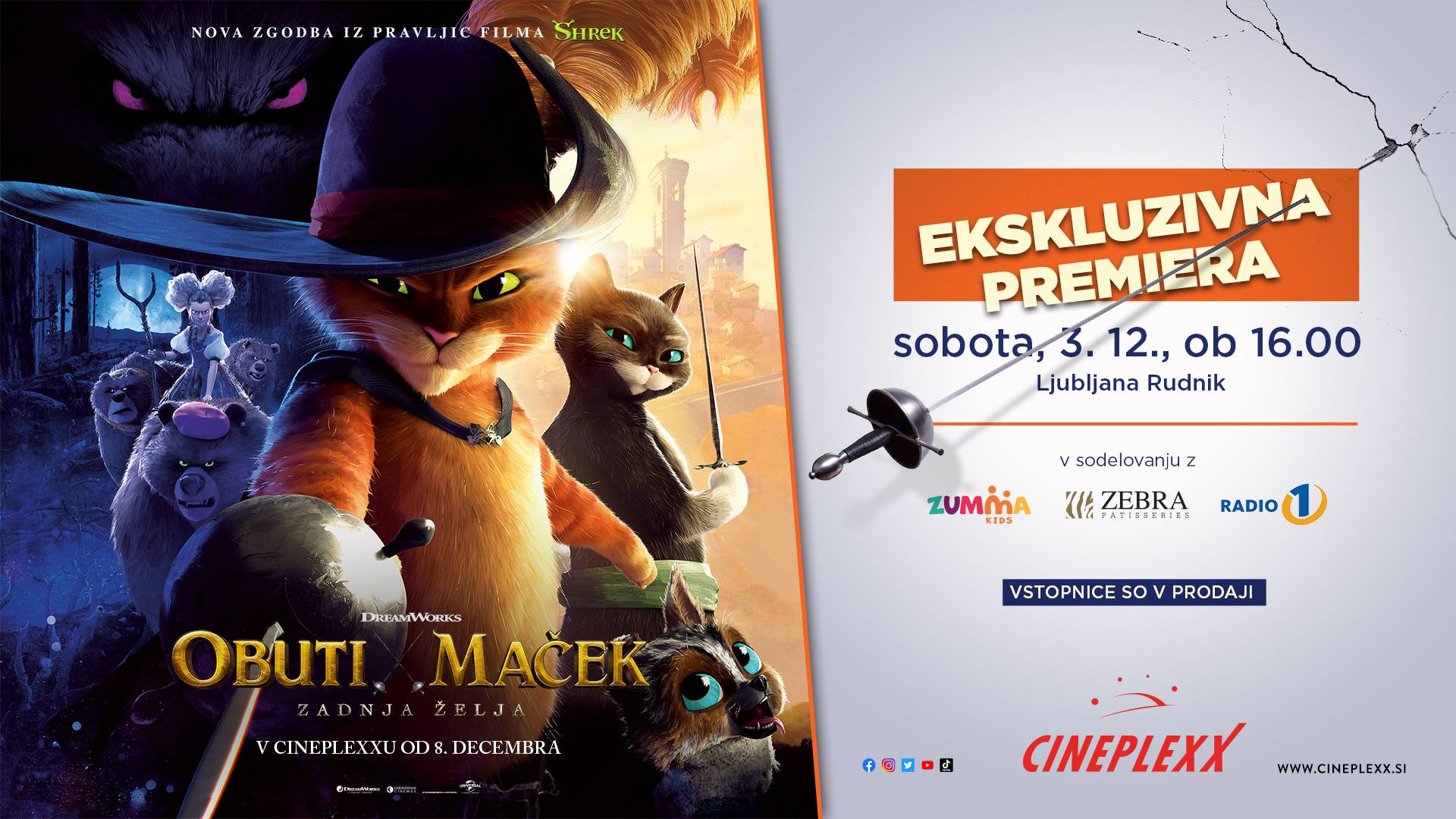 PREMIERA - OBUTI MAČEK: ZADNJA ŽELJA - CINEPLEXX LJUBLJANA RUDNIK