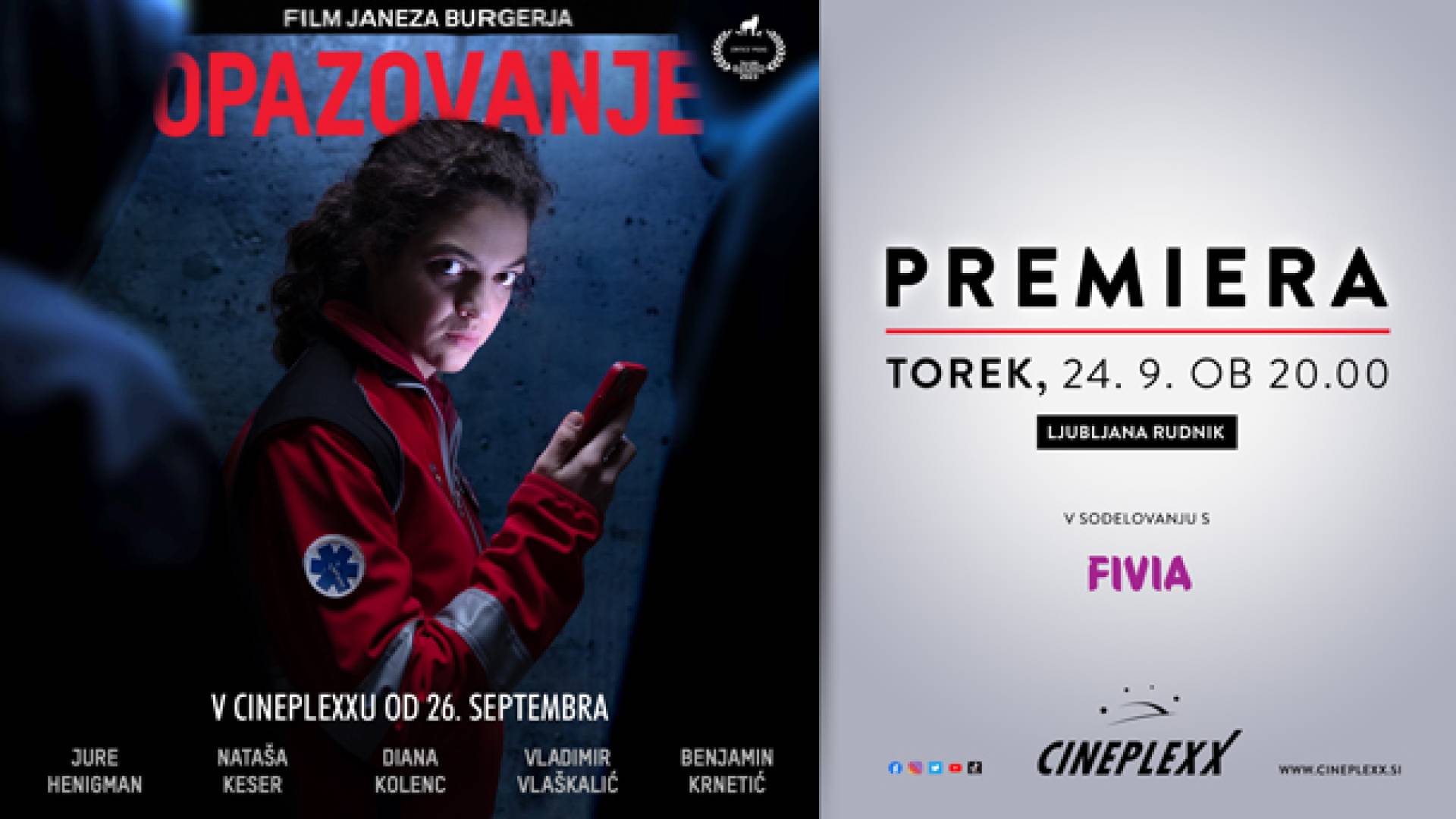 Cineplexx Ljubljana RudnikPridruži se na premieri filma OPAZOVANJE, ki bo v Cineplexxu Ljubljana Rudnik, že v torek, 24. septembra 2024, ob 20:00!