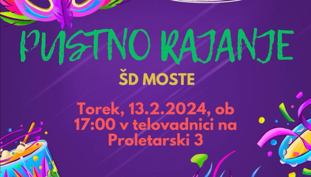 ŠD - Moste - Šport mladih in rekreacijaV torek, 13.2.2024, ob 17:00 bomo imeli PUSTNO RAJANJE 🎉 🎊🃏🎉