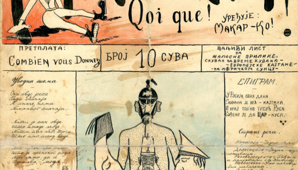 Mestna knjižnica Ljubljana - Knjižnica Otona ŽupančičaVse do nedavnega so bili unikatni, rokopisni časopisi srbskih vojakov iz prve svetovne vojne širši javnosti popolnoma nepoznani vendar skrbno čuvani v arhivih Narodne biblioteke Srbije. Prvič so bili javnosti predstavljeni v letu 2021 v Beogradu. V času nastanka in vojnih razmer so srbski vojaki na fronti ustvarjali rokopisne, unikatne časopise, ki so krožili v rovih med vojaki na fronti in v katerih so izražali svoja čustva, pripadnost do domovine po drugi strani pa tudi izražali in ponazarjali vso tragiko in nesmisel vojne ter željo po miru in vrnitvi k svojcem in mirnemu življenju.