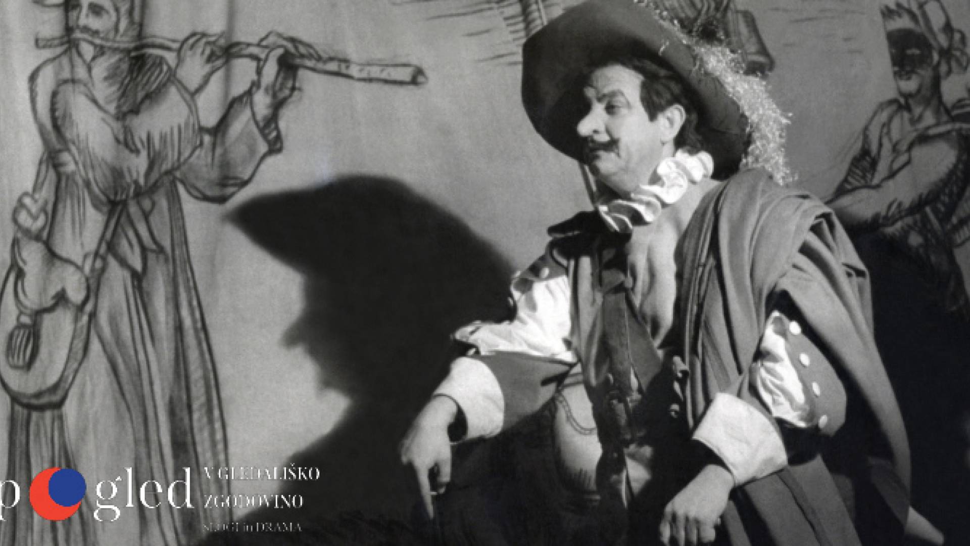 Na fotografiji: Stane Sever kot Cyrano de Bergerac v uprizoritvi Rostandove igre pod režijskim vodstvom Slavka Jana; Drama SNG v Ljubljani, premiera 14. oktobra 1954. Foto: Vlastja Simončič, vir: Ikonoteka SLOGI – Gledališki muzej.