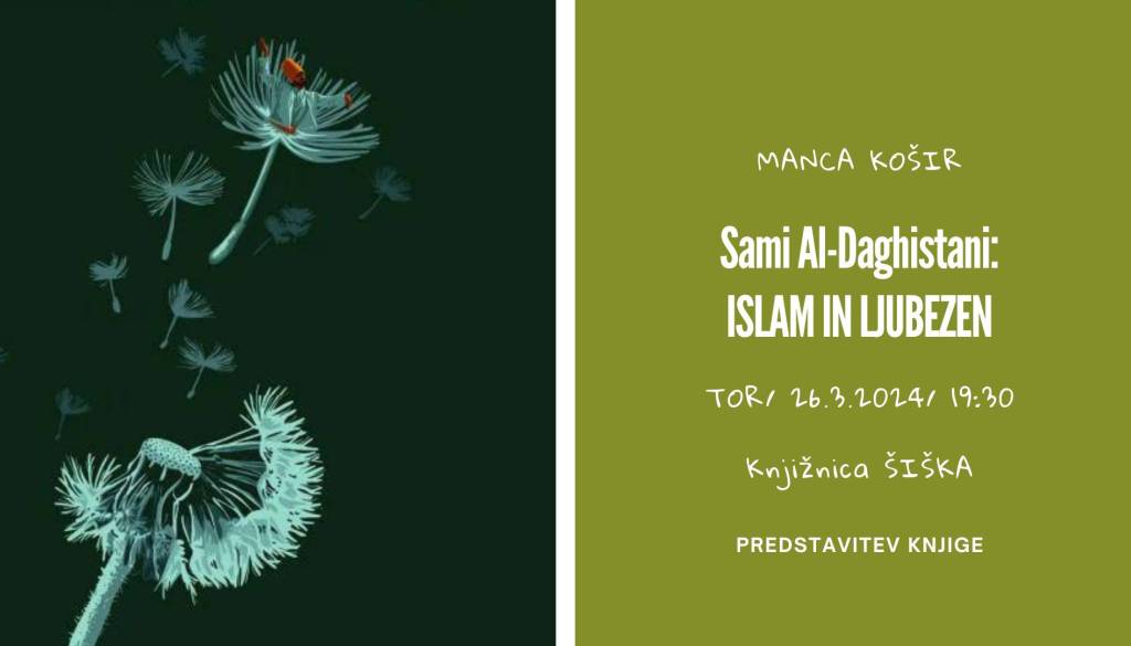Pogovor o knjigi Islam in Ljubezen bo z avtorjem Samijem Al-Daghistanijem vodila Manca Košir. Gost pogovora bo tudi Mirt Komelj. Dogodek poteka v organizaciji Festivala literature sveta – Fabula in projekta Beletrinini trubadurji.