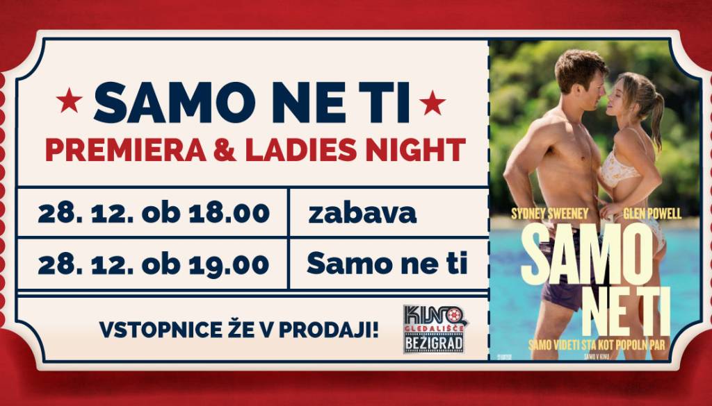 Kino BežigradKaj je boljše od polnočnega novoletnega poljuba? 👄🍾🤔 LADIES NIGHT s puncami s premiero komedije Samo ne ti! 🤩 28. decembra si boste lahko pri nas od 18.00 dalje lahko privoščile kakšnega izmed ekskluzivnih koktejlov, v katerih lahko, mimogrede, uživate tudi v naši dvorani, kjer vas bosta ob 19.00 Bei in Benu konkretno nasmejala. 😂🫶 Za piko na i pa vsaka obiskovalka (hohoho) prejme tudi darilce! 🎅🎁
