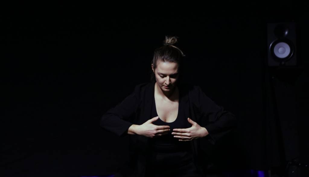 The solo performance is being created as part of the practical segment of a diploma thesis at the Academy of Dance (AMEU). The author explores and integrates a dramaturgical perspective through instant composition. The central question is: how does past material inform future decisions?/