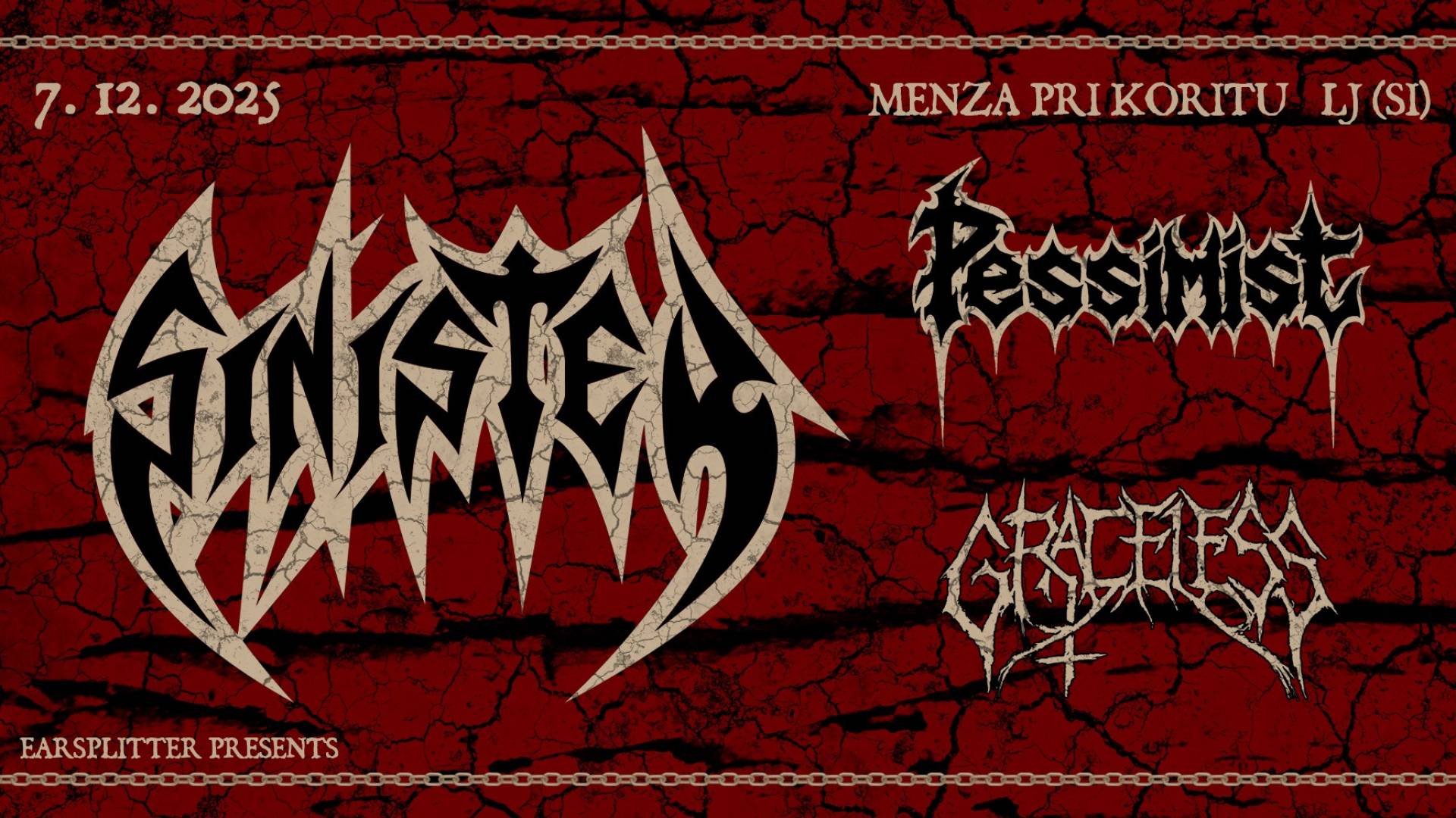 Po odličnem koncertu v Tolminu '24, se v Slovenijo vrača nizozemsko-slovenska death metal naveza SINISTER! S seboj bodo tokrat pripeljali še ameriške black death legende PESSIMIST in nizozemski death doom kvartet GRACELESS. Pripravite se na old school brutalizacijo leta!