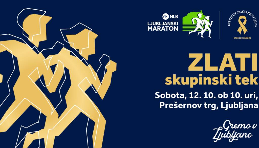 Prešernov trg📍V soboto, 12. oktobra vas lepo vabimo na brezplačni skupinski tek ZLATI TEK pod okriljem 💚💙 NLB Ljubljanskega maratona. Povezujemo tekače v zgodbo »Gremo v Ljubljano« in tokrat s poimenovanjem Zlati tek, saj letos v dobrodelni zgodbi za deklico Tinko, sodelujemo z Inštitutom Zlata pentljica.