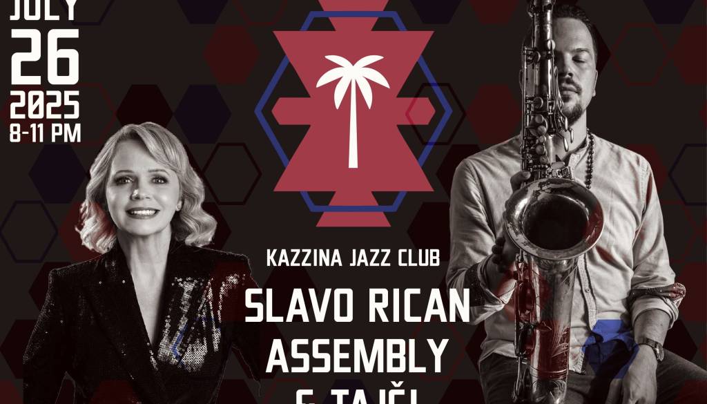 Pridružite se nam na nepozabnem glasbenem večeru, kjer se bosta združila eksplozivna mešanica karibskih ritmov in balkanske melodičnosti – predstavila se bo zasedba Slavo Rican Assembly, obogatena s posebnim gostovanjem legendarne Tajči, znane po hitih Hajde da ludujemo in Dvije zvezdice – tokrat v sveži, jazz preobleki!