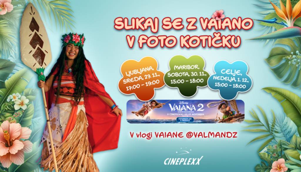 Cineplexx Ljubljana RudnikPridi v kino in se slikaj z Vaiano v foto kotičku! V vlogi Vaiane bo @ValMandz.