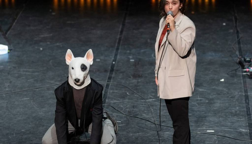 Oder pod zvezdami LGLSmrdljivi koncert na štirih tacah je hkrati tok zavesti, hrup in slam poezija. Uglasbljeno in s težkim poetičnim jezikom izpisano vprašanje o odraščanju in zmožnosti posameznika znotraj ustaljenih struktur ter neke vrste evoluciji, ki po nenapisanih pravilih mlade na prelomu tridesetih ukloni v odrasle in jih udomači, kot je družba udomačila pse. Obenem je predstava vprašanje, kam izginjata divjost in živalska pristnost, ter ubeseditev bega pred otopelostjo, kakršni želijo ubežati ulični psi in mladi, ki se po koncu turistične sezone sprehajajo po opustelih ulicah svojih mest. To željo – razbiti, pretresti svet in v sebi odkriti divjo žival – na oder za nas pripeljeta Alice in Davide Sinigaglia. Brat in sestra, ki prihajata iz turistične La Spezie, sta predstavo ustvarila med zimskimi sprehodi po opustelih ulicah svojega mesta in med premišljevanjem o Derridajevi knjigi Žival, ki torej sem. Davide Sinigaglia sicer deluje kot tolkalec, Alice pa je režiserka.