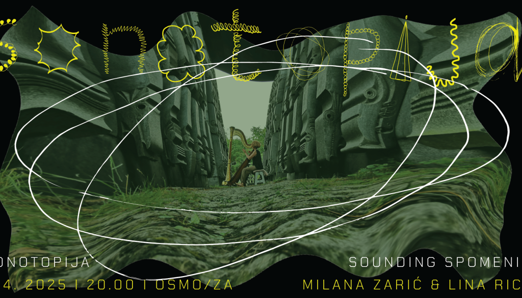 OsmozaPo uspešnih predstavitvah na dunajskem Wien Modern, v Galeriji Alkatraz in v beograjskem prizorišču Dim, z veseljem napovedujemo četrti predstavitveni večer projekta Sounding Spomenik. Tokrat vas vabimo v Osmo/zo v Ljubljani, kjer bo harfistka Milana Zarić izvedla skladbo, obogateno z ambientalnimi posnetki s snemanj v Spominskem parku borbe in zmage v Čačku, Srbija. Izven mesta na hribu stoji impozanten mavzolej, ki predstavlja popoln odmik od junaških simbolov značilnih za spomenike povojnega obdobja saj vključuje 620 kamnitih grifonov, katerih ikonografija spominja na mitološke vsebine starodavnih vzhodnih civilizacij. Delo je bilo dokončano leta 1980 pod vodstvom arhitekta Bogdana Bogdanovića.