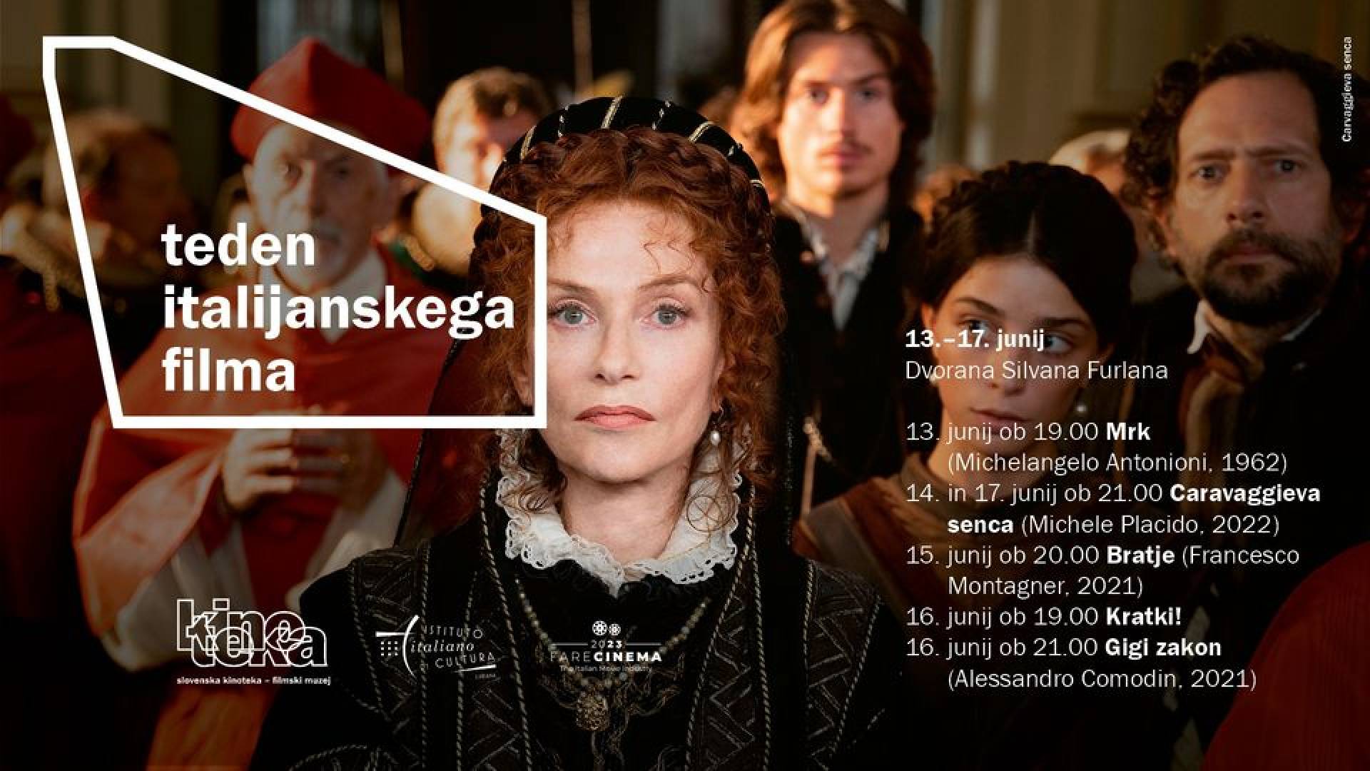 Teden italijanskega filma s podnaslovom Ustvarjati film sočasno poteka v številnih državah sveta. Slovenska kinoteka ga že šestič zapored pripravlja v sodelovanju z Italijanskim inštitutom za kulturo v Sloveniji. Med 13. in 17. junijem se bomo ob sodobnih celovečernih in kratkometražnih avtorskih presežkih za kratek čas preselili na Apeninski polotok. Na otvoritvi, 𝟭𝟯. 𝗷𝘂𝗻𝗶𝗷𝗮, 𝗼𝗯 𝟭𝟵. 𝘂𝗿𝗶, pa se bomo s projekcijo klasike Michelangela Antonionija 𝗠𝗿𝗸 (1962), predvajane s 35-mm filmske kopije, poklonili spominu na veliko igralko Monico Vitti.