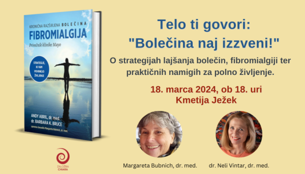 Pogovor bo tekel o strategijah lajšanja bolečin, fibromialgiji ter praktičnih namigih za polno življenje.