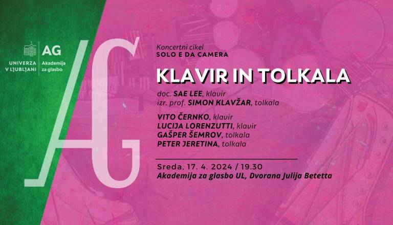 Koncertni cikel Solo e da camera: 𝗞𝗟𝗔𝗩𝗜𝗥 𝗜𝗡 𝗧𝗢𝗟𝗞𝗔𝗟𝗔 doc. Sae Lee, klavir izr. prof. Simon Klavžar, tolkala Vito Černko, klavir Lucija Lorenzutti, klavir Gašper ...