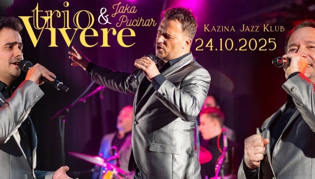 Vabljeni na edinstven koncert TRIA VIVERE s posebnim gostom Jako Puciharjem, ki bo v Kazina Jazz Klubu 24. oktobra 2025 ob 20.00 uri.