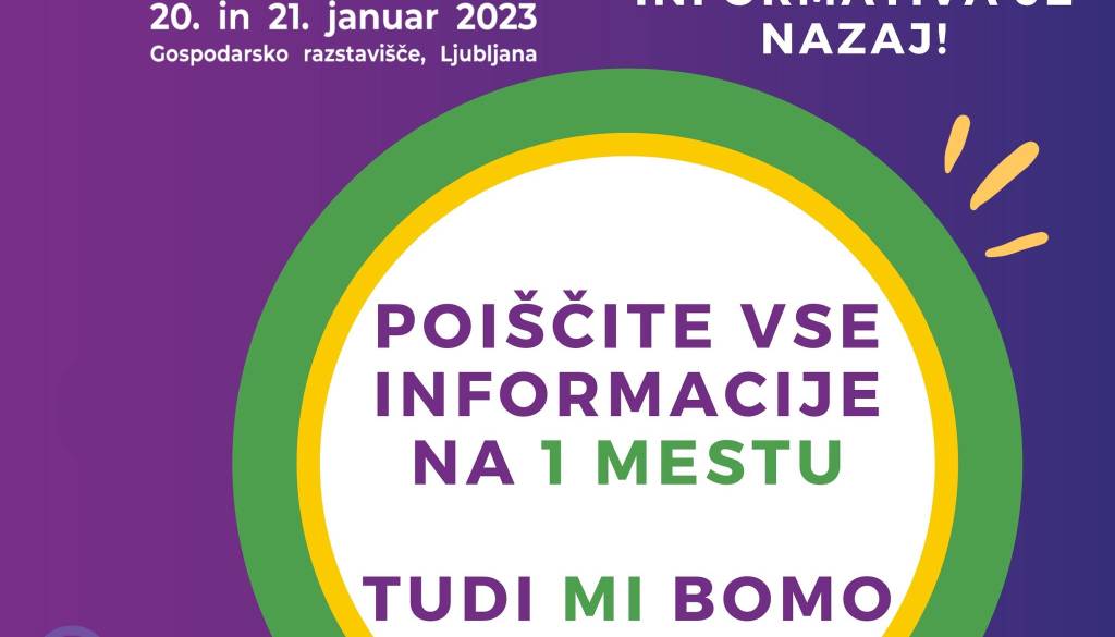 Petek in sobota, 20. in 21. januar 2023 od 9. do 18. ure - Gospodarsko razstavišče, Ljubljana.