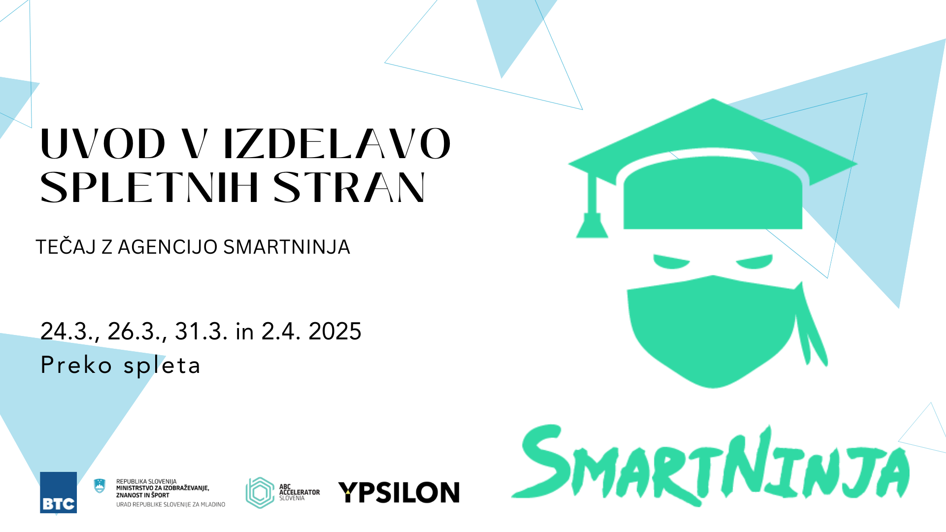 Zavod Ypsilon v sodelovanju s Smartninja organizira 4-delni tečaj, kjer boš osvojil/a osnove HTML in CSS ter ustvaril/a svojo prvo spletno stran!