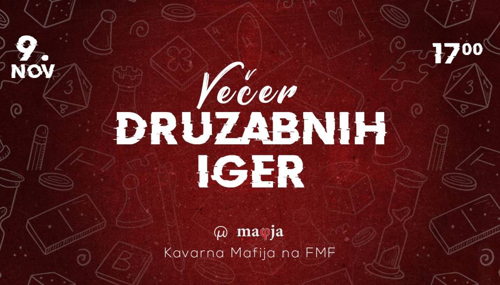 ŠO Mafija ponovno vabi na težko pričakovan večer družabnih iger! Kot vedno bo dogodek potekal v kavarni Mafija.