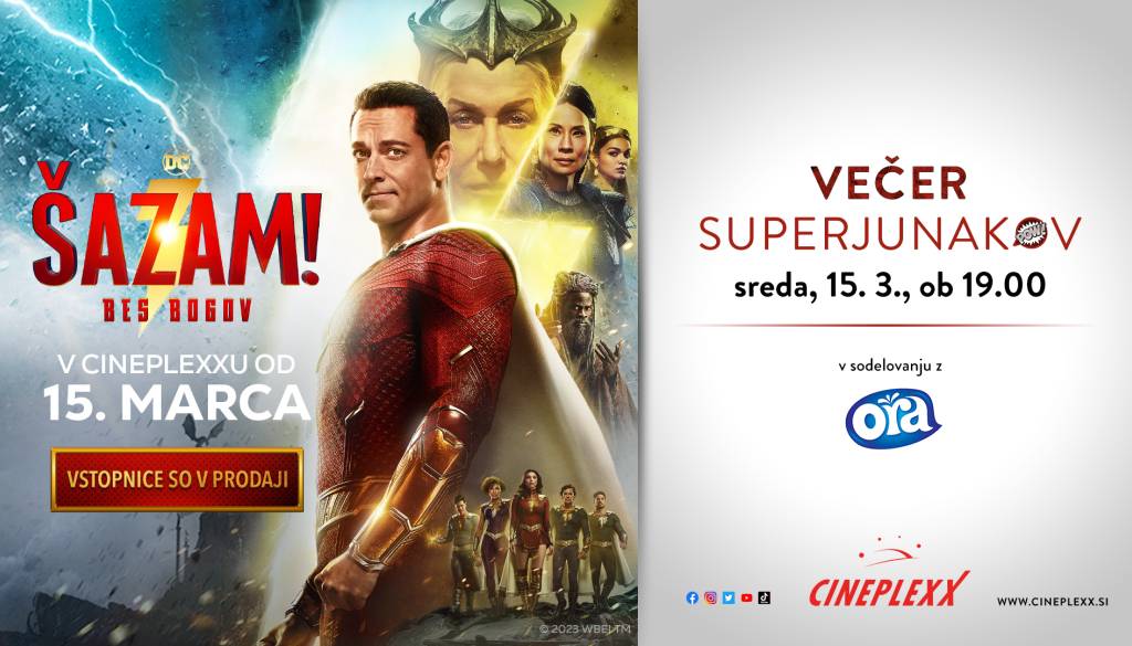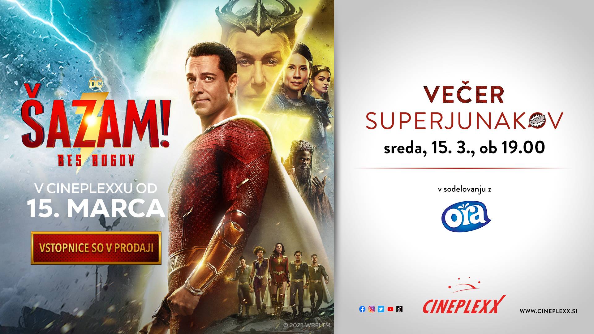 Cineplexx Ljubljana RudnikPREDPREMIERNO, v sredo, 15. marca, ob 19:00, ne zamudi VEČERA SUPERJUNAKOV z novim DC spektaklom, ŠAZAM! BES BOGOV.