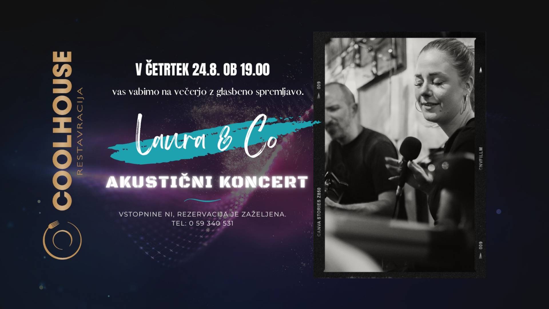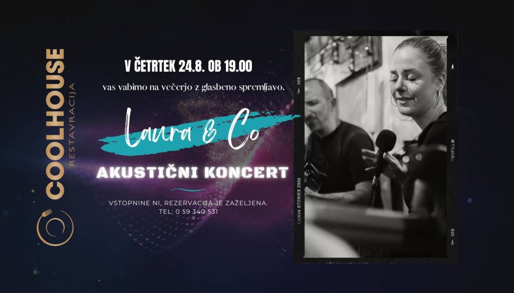 Cool House LjubljanaV četrtek 24.8. ob 19h vas vabimo na večerjo in akustični koncert z Lauro&Co. Vstopnine ni, rezervacija je zaželjena. Tel: 059340531 ali preko spleta: https://book.table42.app/rest.../389/restavracija-cool-house