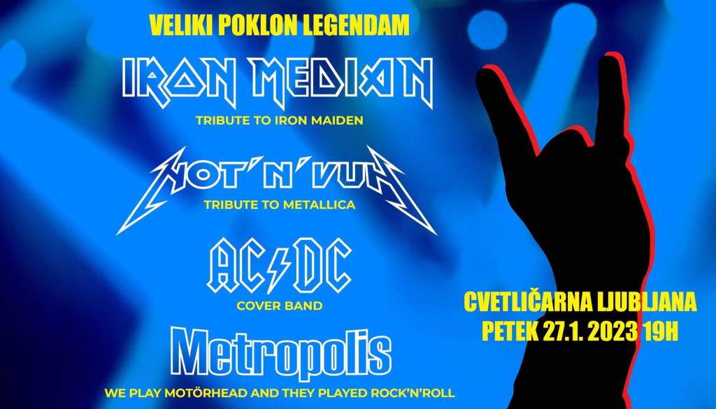 27. januarja se v ljubljanski Cvetličarni obeta metal žurka leta! Štirje najvidnješi slovenski tribute bandi bodo prvič združili moči in se poklonili svojim vzornikom, legendam Iron Maiden, Metallica, AC/DC in Motorhead. Po koncertu nadaljujemo z DJ setom največjih hard`n`heavy metal & rock hitičov do jutranjih ur!