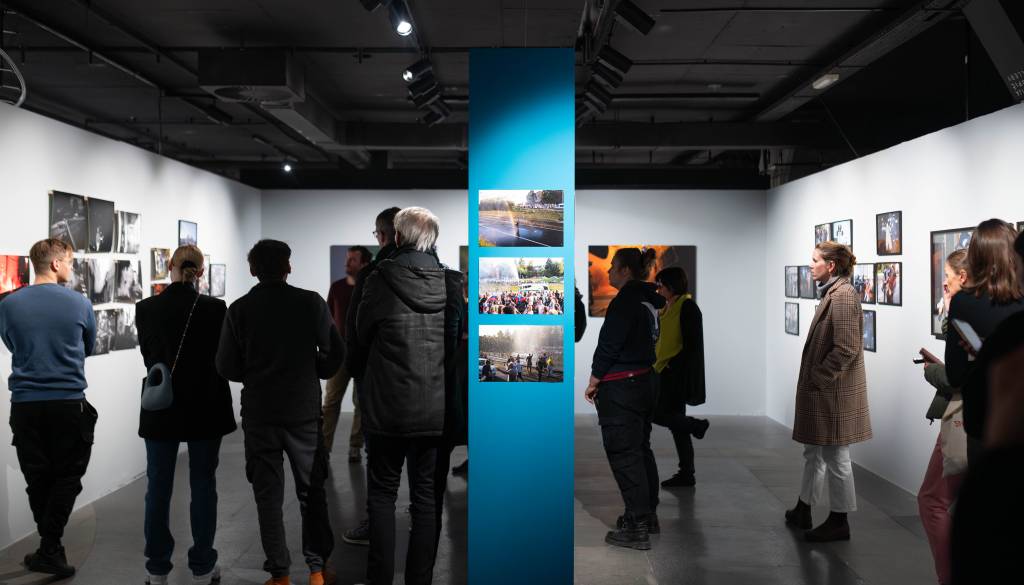 Vodstvo po razstavi protestne fotografije Naša last v Galeriji Jakopič
