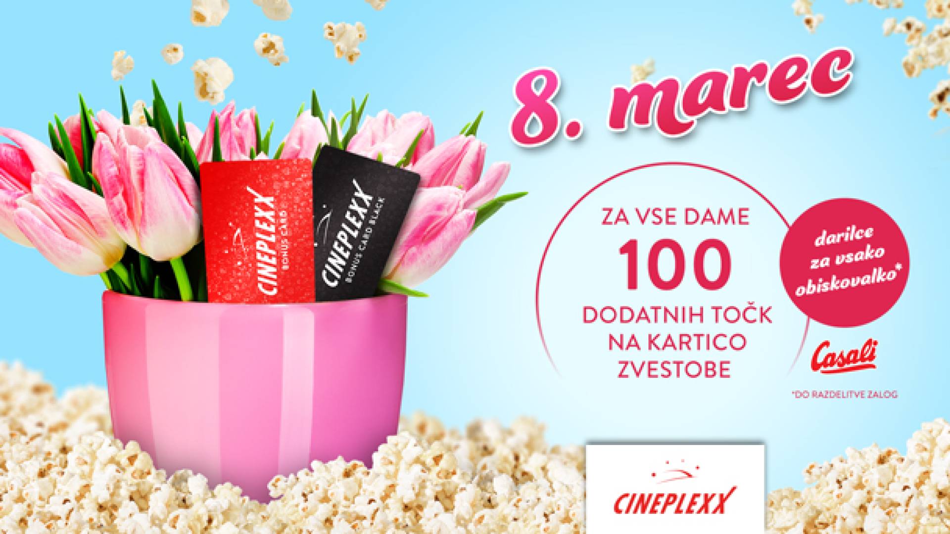 Zberte svoj krog najboljših prijateljic in pridite v kino! Ob uporabi naše kartice pri nakupu vstopnic nanjo prejmete dodatnih 100 točk! Ob vstopu v dvorano pa bo naše dame pričakalo še malo darilce, ki ga podarja Casali.